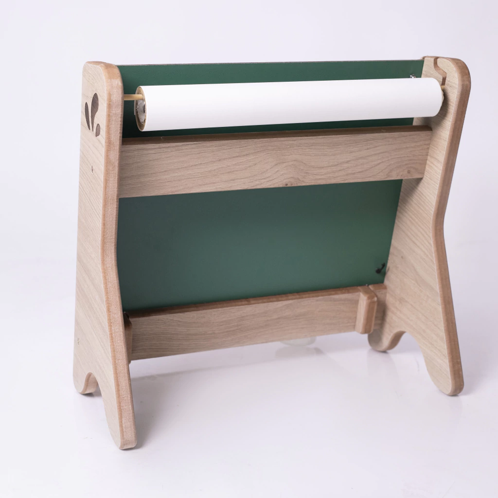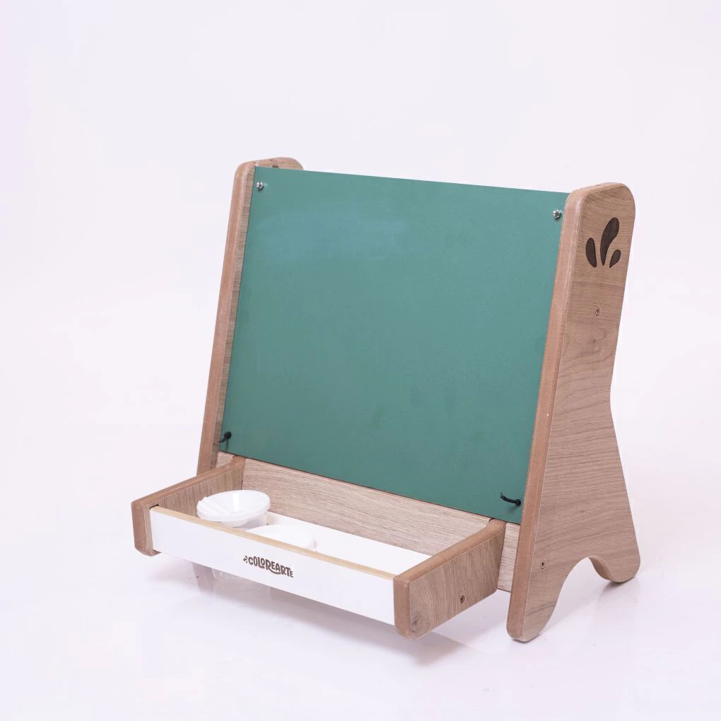 Modalidad 4 en 1: Básico doble faz, un lado para tizas y el reverso para marcadores/fibras e imanes( es imantado!), sumado a un rollo de papel para pinturas, lápices, collages, etc. Esta movilidad de la pizarra permite conservar como recuerdo o colgar como cuadro, cualquier obra que el pequeño artista haya hecho. se renueva el soporte.