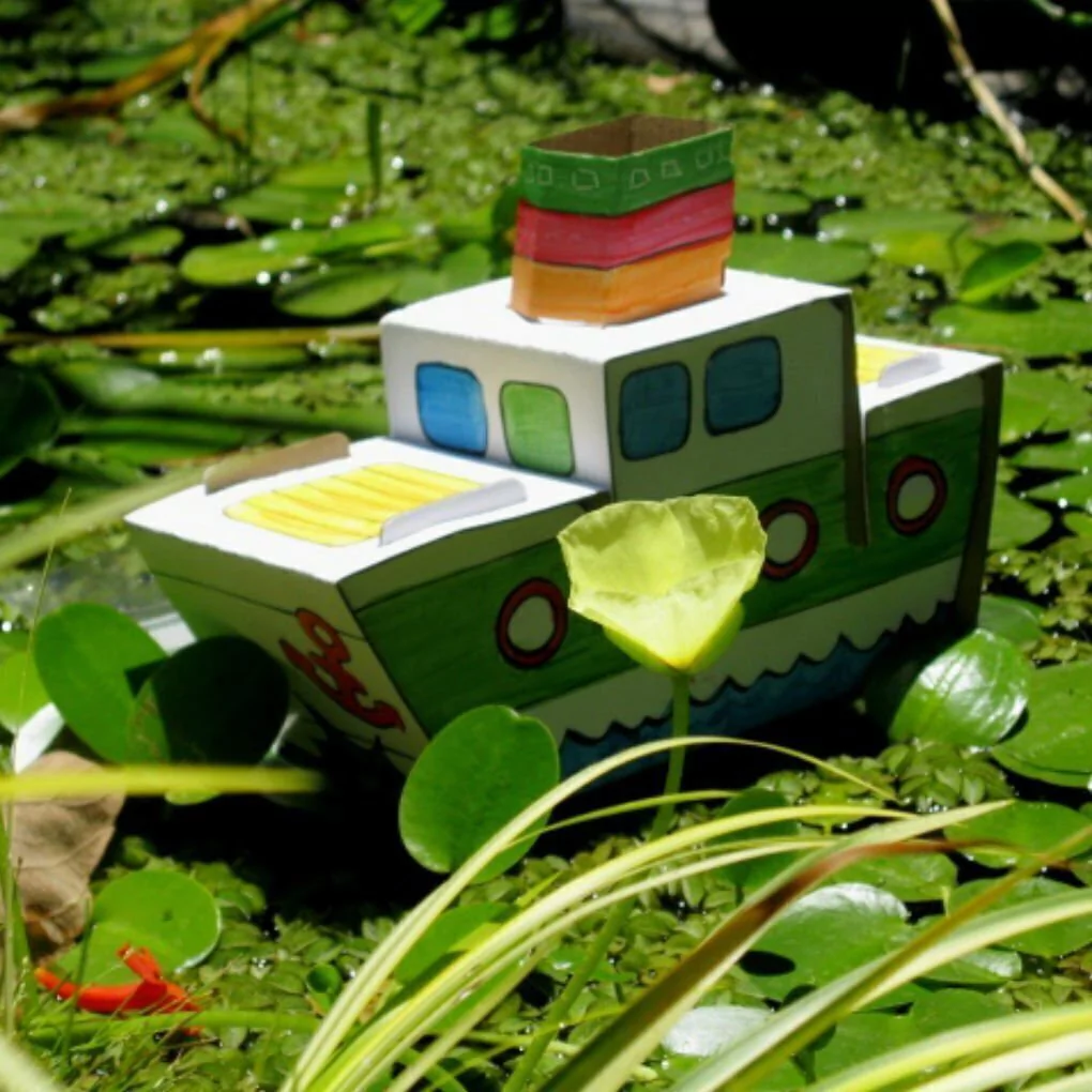 El kit "Construir y Decorar" es una propuesta didáctica y ecológica. Se trata de un juego para plegar y armar un barco, para luego pintarlo y decorarlo de la manera que el niño desee.