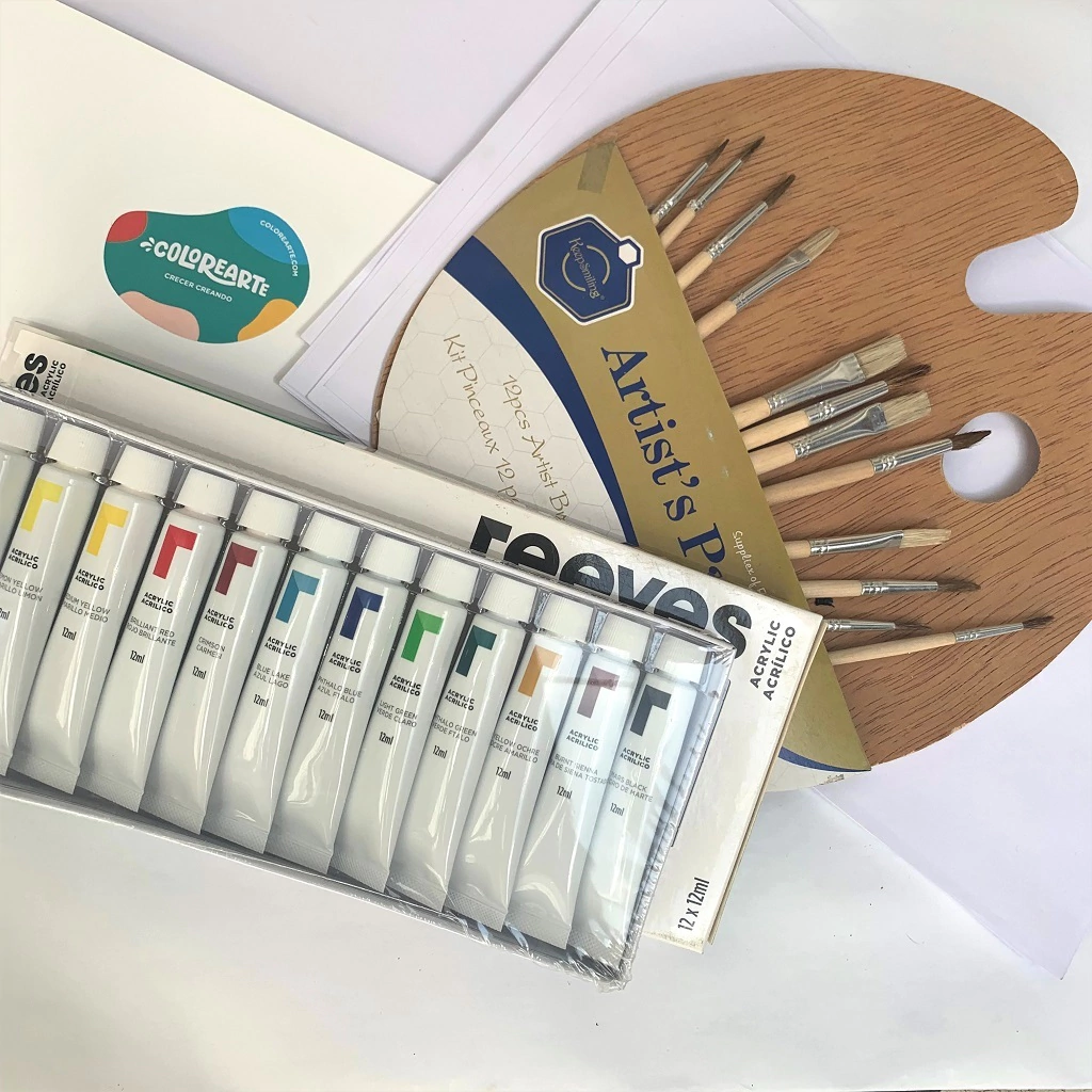 Los acrílicos Reeves (origen: Inglaterra) son ideales como primera aproximación a este material por su calidad. Tienen colores vibrantes, versátiles y pigmentados. Además, son flexibles evitando rajaduras y descamación.